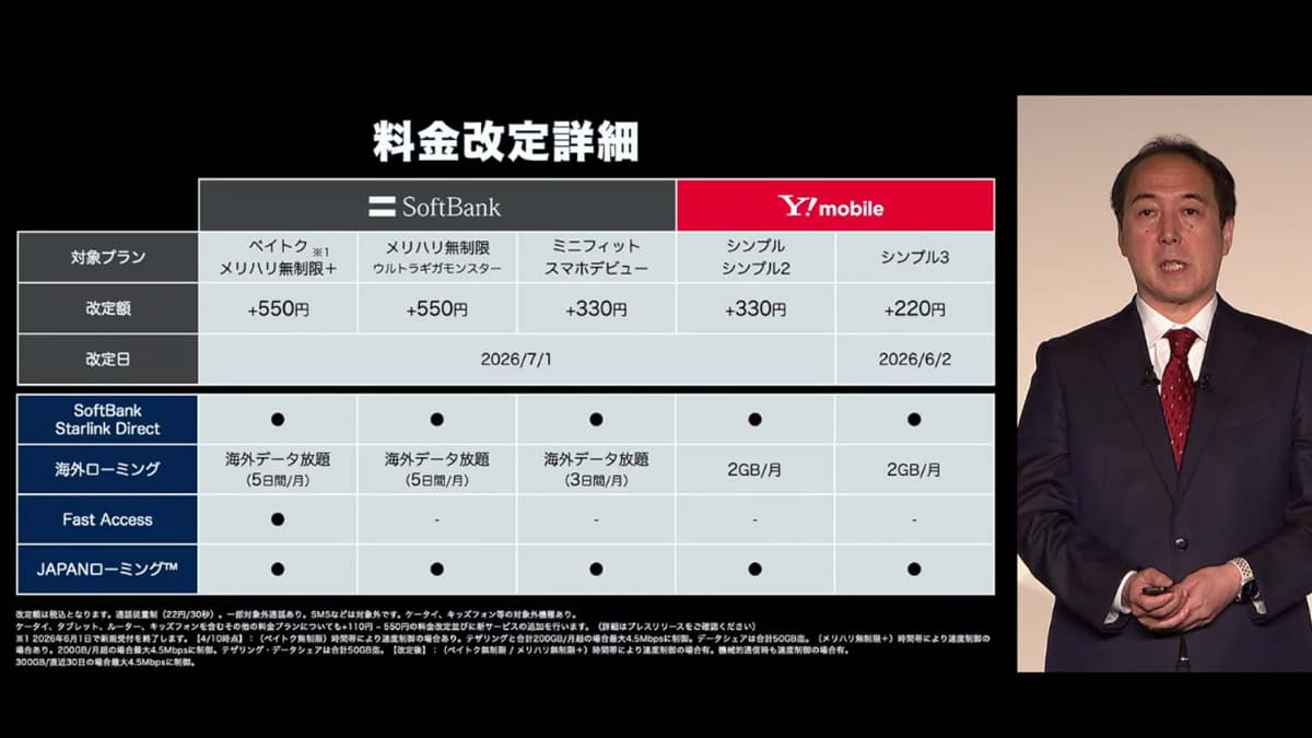 ソフトバンク、通信料金を値上げ 110~550円(2/4)
