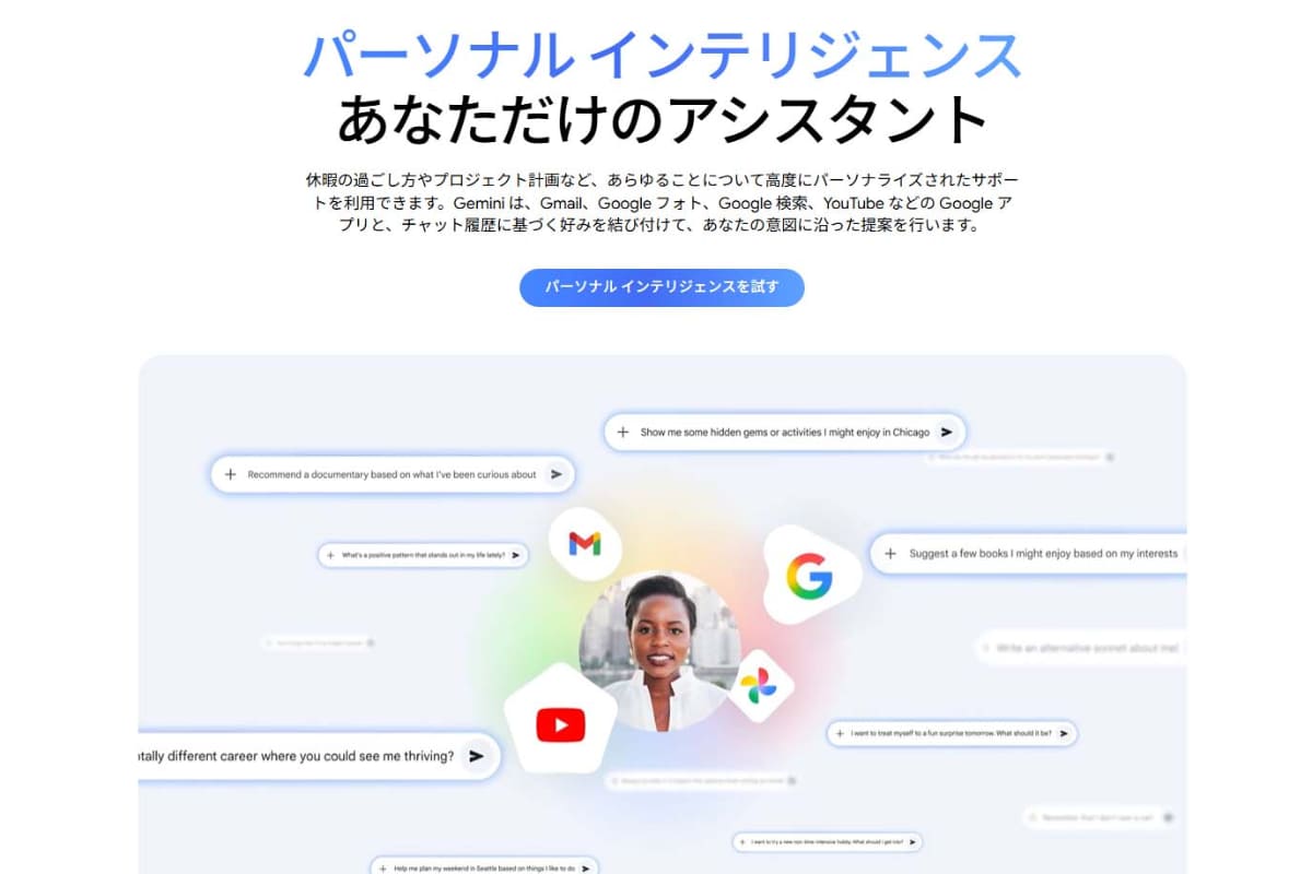Geminiが個人アシスタントになる新機能「パーソナルインテリジェンス」