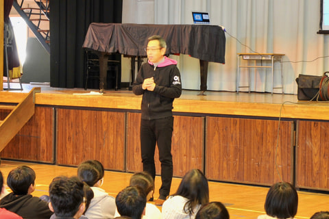 最初に体育館に集合してオリエンテーションが行われた。児童たちは今日の特別授業をとても愉しみにしていたようで、冒頭挨拶に立ったサイボウズのビジネスプロデューサーであり、複数の企業に所属して活躍する複業の実践者としても知られる中村龍太氏の話に熱心に耳を傾けていた。