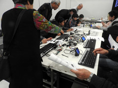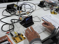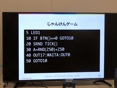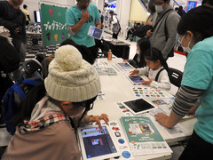 また、教育用コンピューター「IchigoJam」を使ったワークショップも行われた。IchigoJamは日本生まれのコンピューターであり、IchigoJam BASICと呼ばれるBASIC言語を用いてプログラミングを行う。柏市の登録ボランティアの方がワークショップを手伝っており、子供達をサポートしていた。こちらも、キーボードからプログラムを入力する必要があるので、キーボードに慣れていない子供達はやや苦戦していたようだが、自分でゲームのプログラムを入力し、無事に動くと喜びの声を上げていた。