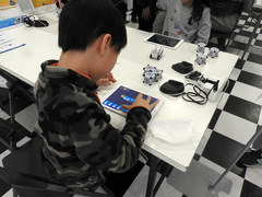 会場では、無料で9種類のプログラミングツールの体験ができ、子供達が熱心に取り組んでいた。そのプログラミングツールとは、GPリーグの「トレーニングジム」、ディー・エヌ・エーの「プログラミングゼミ」、タカラトミーの「COZMO(コズモ)」、Edisonの「Edisonプログラミングロボ」、JEITAの「アルゴロジック」、ヴイストンの「プログラムマスター」、ORSOの「DRONE STAR(ドローンスター)」、ピコソフトの「ORANGE pico(オレンジピコ)」、フィッシャーテクニック・エデュケーションの「フィッシャーテクニック」の9種類である。順番に紹介していこう。