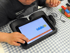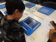 JEITAは、アルゴリズム学習パズルゲーム「アルゴロジック」の体験デモを行っていた。アルゴロジックはWebアプリとして動作するため、Webブラウザーが動作すればタブレットでも利用できる。プログラミングの基礎となるアルゴリズム(論理的思考)をパズル感覚で学ぶことができる定番のアプリだ。