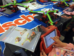 フィッシャーテクニック・エデュケーションは、ドイツ生まれのSTEM教材「フィッシャーテクニック」の体験デモを行っていた。フィッシャーテクニックは、歯車などのメカの仕組みを理解するための教材であるが、タブレットを使ってプログラミングができるモデルも用意されている。