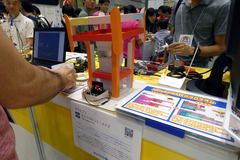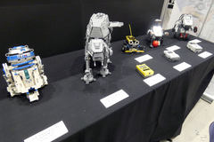 アフレルのブースでは、レゴマインドストーム20周年を記念して、歴代のマインドストーム関連製品やレゴマインドストームを使う国際的なロボット大会「WRO」(World Robot Olympiad)に関する展示を行っていた。レゴマインドストームを活用した作品も多数展示されており、ルービックキューブを自動的に完成させる装置やボーリングロボットなど、高度な作品に注目が集まっていた。また、白色のレゴを使って自由にものを作れるコーナーもあり、子ども達が楽しそうにブロックで遊んでいた。