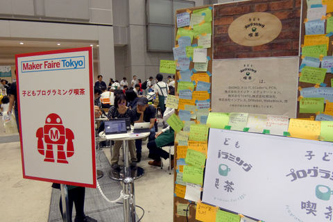 また、PCNやスイッチ・エデュケーション、TENTO、インプレス、OtOMO、DFRobotなど多くの企業の協力による、「子どもプログラミング喫茶」も人気を集めていた。子どもプログラミング喫茶では、さまざまな子ども向けのプログラミング体験メニューが用意されており、喫茶店のようにメニューを見ながらやりたいプログラミングを注文できるようになっており、子ども達は、Scratchやマインクラフト、mBotなど、さまざまなプログラミング体験に取り組んでいた。