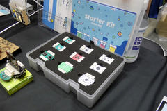 また、磁力で壁に貼り付いて動く「うおーるぼっと」シリーズを開発している“じぇーけーそふとのこーなー”のブースでは、新型の「うおーるぼっとG」のデモが行われていた。うおーるぼっとは、micro:bitを搭載できることが特徴であり、もう1台のmicro:bitからの操縦やプログラミングでの動作が可能だ。Seeedのブースでは、micro:bitに対応した「Car Shield for micro:bit」や日本未発売のSTEM教材「Grove Zeroスターターキット」などが展示されていた。
