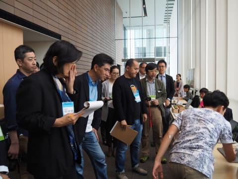 審査会の舞台となった秋葉原コンベンションホールホワイエでは、小中学生プログラミング大会入選作品の展示と最終選考が行われ、同時にU-22プログラミング・コンテストの審査も行われた。