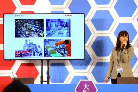 決勝大会に先立ち、ヤマハ発動機ロボティクス事業部 西川愛子氏が「ヤマハ発動機ロボティクス未来塾」と題して特別講演を実施。バイクや電動アシスト自転車のような一般製品でよく知られた同社だが、農場での農薬散布用の大型ドローンをはじめとする産業用ロボットも数多く開発していることを紹介した。