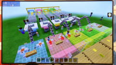 コースには4つの障害があり、1つ目がレッドストーン回路。2つ目が怪しい「はてなブロック」の橋。上に乗ると元の位置に戻ってしまうが、エージェントが歩くと石に変わって橋を渡ることができる。次にガラスの下にあるスイッチ。プレーヤーでは押せず、エージェントでぐるりと1周してボタンを押すと、次へのドアが開く。最後がジグザグに並んだ長いはてなブロックの通路で、こちらもエージェントが通って石にしてからプレーヤーが渡る。最後に金色のビクトリーランを走り抜けてゴール! というコースだ。これら4つの要素をクリアするために、エージェントをプログラムでいかに効率的に動かすかがポイントになる。