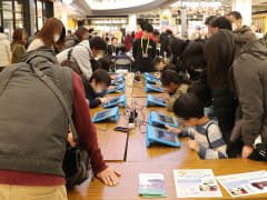 会場となった大型ショッピングセンターのアリオ川口では、12月21日・22日に「プログラミング・ラーニングスタジオ」と題して無料のプログラミングやドローンの体験会を実施。受付開始の1時間以上前から整理券を求める親子の長い列ができ、関心の高さが感じられた。