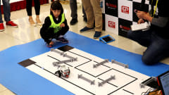 「ロボットバトルロイヤル」は、今大会から新設されたエンジニアリング系競技だ。市販のロボット教材を部品から組み立て、プログラミングで制御し、用意されたコースをゴールするまでのスピードを競うタイムトライアル。制限時間は1人1回5分で、2回までトライできる。加点方式で正確性や障害物の取り扱いでボーナスポイントも付く。
