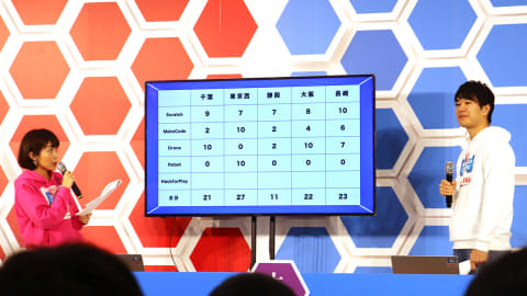 優勝した東京西代表は「ドローンバトル」では0点となったものの、「メイクコードバトル/マインクラフト」と「ロボットバトルロイヤル」の1位が効き、「ハックフォープレイバトル」も2位と、地力の強さを見せつけた。準優秀賞の静岡代表は、最後の団体戦「ハックフォープレイバトル」で劇的な追い上げを見せ、終始安定した強さを見せていた大阪を1点差で振り切り、見事に準優秀賞に滑り込んだ形だ。