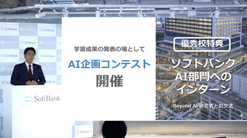 ソフトバンクでは「AIチャレンジ」の成果として出されたAIの企画を集め、AI企画コンテストを実施する。時期は2023年1~3月を予定する。優秀校にはソフトバンクのAI部門へのインターンシップやスタッフとの交流の場を設け、より理解を深めてもらうという。