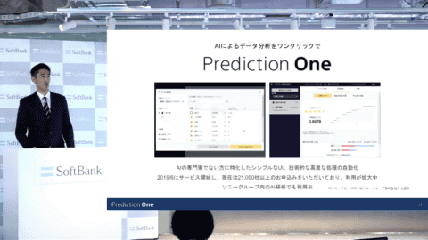 「AIチャレンジ」に提供される「Prediction One」は、「AIによるデータ分析をワンクリックでできるツールで、専門家でなくても利用できる。AIの普及に貢献していきたい」という。既に21,000社が無料体験を利用しており、ソニーグループでは新入社員のAI研修にも利用されているという。