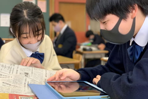 一方で福島教諭は、iPadを使う学習ばかりを重視しているのではない。同教諭は週に1回、生徒全員に新聞一冊を配り、その中から気になる記事を選んで要約し、感想を書く活動を取り入れている。生徒たちは自分が選んだ記事がSDGsのどのテーマと関係があるのかを考え、自分の価値観の尺度を広げていく。福島教諭は「デジタルとアナログ、両方のメリットを体験しながら、社会を見る目を養い、道徳観や国語力を育んでいきたいと考えています」と述べた。