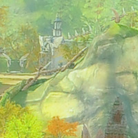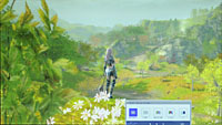| フルHD(1920×1080)の映像を原寸表示した状態で、Super+ Resolutionの効き具合を比較。 解像感の増加以外にも、ファンタジー世界ならではの鮮やかな風景描写にも変化が出てくる |