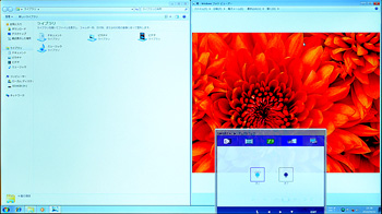 1つは、「DualWeb」機能と呼ばれるもの。これはWeb画面、各種ドキュメント画面、その他の任意のソフトのウィンドウを、デスクトップに綺麗に2画面並べて表示させる機能だ。Web画面を見ながら原稿を書いたり、エクスプローラで開いた写真のサムネイル画面を見ながらブログを書く際などには便利に使える機能だ。デフォルトでは面積比1:1で液晶パネルを均等に分割して2画面表示を行う設定となっているが、その表示割合はカスタマイズ可能。また、左右の入れ替えやウィンドウのタスクバーへの出し入れのためのショートカットキーは、自分な好きなキーを割りあてられる。