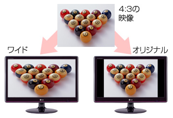 入力映像のアスペクト比を維持したまま表示する「オリジナル画面比」機能