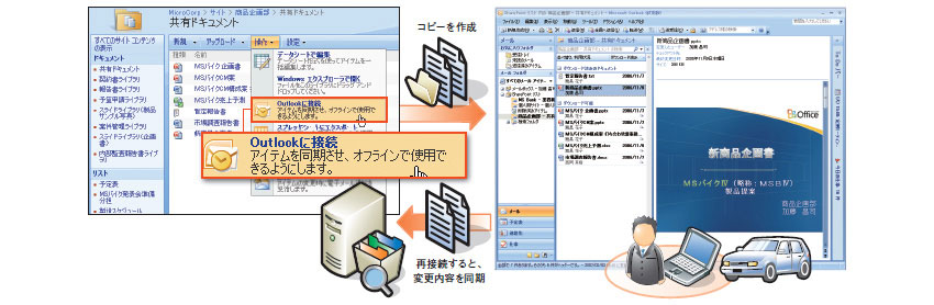 ■Outlookと連携することで、オフライン時に行なった編集作業をオンラインになったときに即座反映