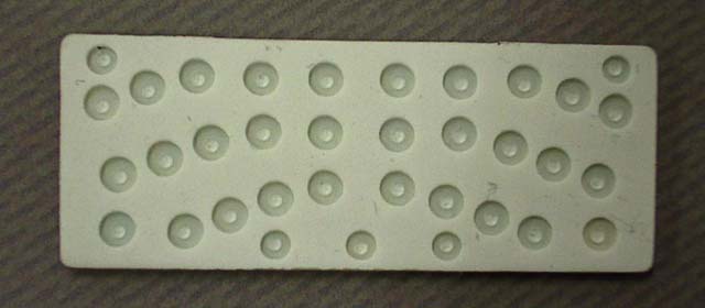 ThumbTypeの表面には半球状の突起があり、いわゆるキートップを形成している。突起の高さはコンマ数ミリであるが、その形状・高さを決定するまでには数々の試作が繰り返された。試作途中での驚き――それは人の指先がもつ感覚の鋭さである。突起の高さを調整する際に、0.1mm刻みで試作を繰り返していたが触ってるうちに“これコンマ5mmだね”とか“これコンマ6mmじゃないと”……と1mm以下の世界もわかる様になってきたのだ(笑)。このような試行錯誤と人間工学的な要素を取り入れ、ThumbTypeは最適化されたキーの形状・配置を実現するに至った。