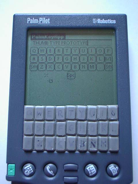 そうした市場の声をもとに、Palmシリーズ用のシリアルインターフェイスを利用した外付キーボードが登場してきた。しかし、これらは快適な入力手段を提供する代わりに、Palmシリーズが目指した小型軽量といったモビリティを犠牲にせざるをえない。そこで登場してきたキーボードシステムが“ThumbType”と言っても過言ではないだろう。