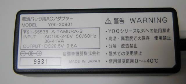 パワーバッテリーは、本体と同梱のACアダプタを接続して充電する。ただ、現行モデルはこのACアダプタが異様に大きい。しかもコンセント部が折り畳みにならないので収納・持ち運びに不便だった。これを改善したのが、一般にはあまり知られていない「オプションのACアダプター」だ。しかし、オプションといっても一般売りしている物ではなくパーツとしてのみ入手可能な品である。そんなことから、一般のショップでは取り扱っておらず、実際に購入できるのは秋葉原の「チチブデンキ」のみという状況である。実際に購入してみたが、マニュアルもパッケージもない。確かに部品扱いであった。このオプションのACアダプタは非常に小型でしかもコンセント部も折り畳めるため、持ち運びに便利だ。「パワーバッテリー」を頻繁に使っているユーザーには必須だろう。