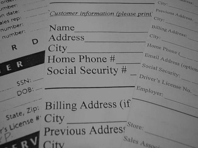 携帯電話の申込書にはソーシャルセキュリティナンバーの記入欄がある |