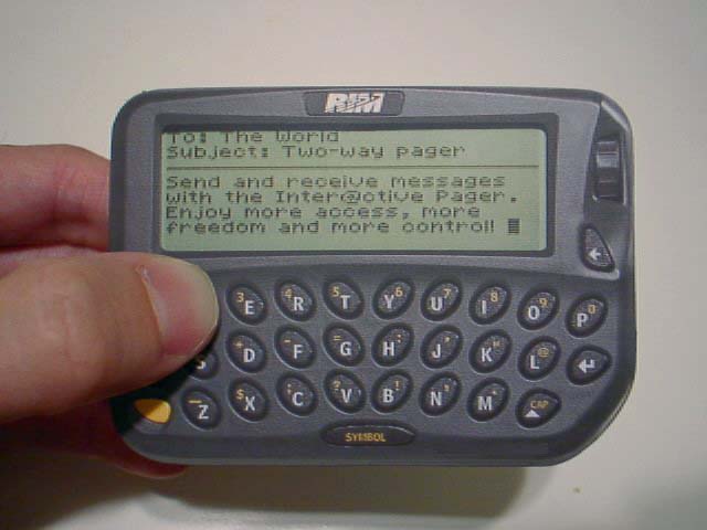 日本と違って、意外と実用的に使われているのが、2Way(双方向)ページャネットワークを使ったモバイルデバイスである。これらのうち、私が気に入っているのが Research In Motion社(http://www.rim.net/)のRIM Pager(写真)である。