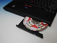 ノートパソコンの場合、用途からいって家庭で見る場合ほどの高画質は要求しない。画質はそこそこでも極端なコマ落ちさえなければよい。ThinkPad 600の場合、オプションのウルトラスリムベイ対応DVDドライブにDVD再生ソフトが付属しているが、実際に再生してみると一応見られるかなといった程度で、なかなか苦しい。またデザインももうひとつといったところで、お勧めではない。