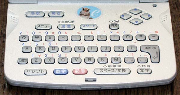 キーボードは他のメール端末同様、ボタンのような丸いデザインを採用し、キーピッチは約10mm程度、キーとキーの間の隙間は約2mm程度となっている。ただし、キーストロークが浅く、キーの高さも低いため、爪の長い女性などには今ひとつ使いにくい。