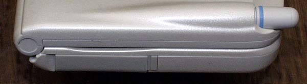 本体左側面。左下のカバー部分を外すと、PDC携帯電話でおなじみのあのコネクタが現われる