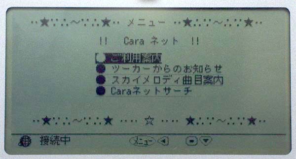 カーラネットの接続画面。ツーカーセルラー東京の最新情報なども提供されている