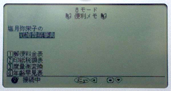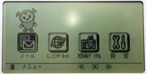 まず、メールは一般的なPOP3/SMTPによるインターネットメールの送受信に対応しており、1通のメールを約1KBと計算した場合、受信ボックスに約400件、送信ボックスに約200件のメールを保存することが可能だ。1通あたりの最大受信サイズは、ヘッダー部分を含んで全角で約1万6千文字(8KB)までとなっている。メール送受信時に利用するアドレス帳も用意されており、200件のメールアドレスと電話番号を登録しておくことが可能だ。また、Cc(Carbon Copy)や返信、一括送信などの機能も用意されており、エントリーユーザーのメール端末としては十分な機能が搭載されている。