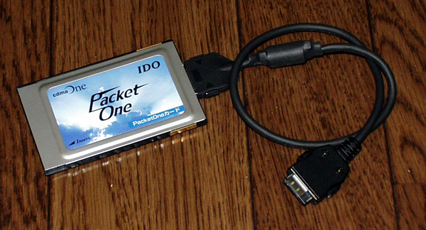 次に必要になるのがPacketOne対応のデータ通信カードだ。DDI-セルラーとIDOの両社から東芝製のPCMCIA TypeIIのカードが発売されている。価格は従来、発売されていたcdmaOneデータ通信カードとほぼ同じ24,000円(DDI-セルラー)、24,800円(IDO)となっている。純正品ということを考えれば、仕方ないのかもしれないが、cdmaOne全国サービス開始のとき同様、かなり「高い」と感じてしまった。PDC用のデータ通信カードはパケット通信に対応したものでも1万円台で余裕で購入できる。いくら通信方式が違うとは言え、今どき、この価格設定は良心的とは言えないだろう。