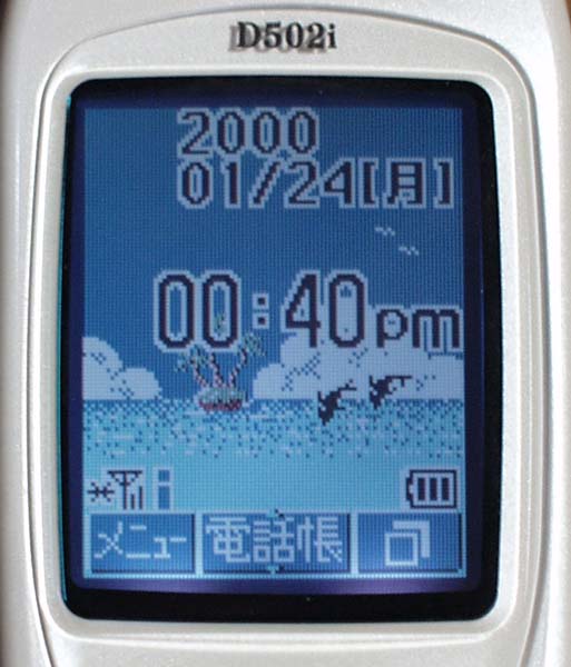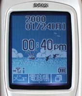 D502iの液晶ディスプレイ画面。3機種中、最大サイズ。モノクロ版iモード端末と比べてもまったく遜色はない