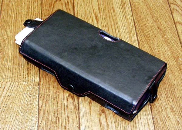 Jornada690を閉じたところ。エクストリームリミットの革ケース(ボディスーツと呼ばれる)の出来は秀逸。他のノートPCやWindows CEマシン用なども販売されている