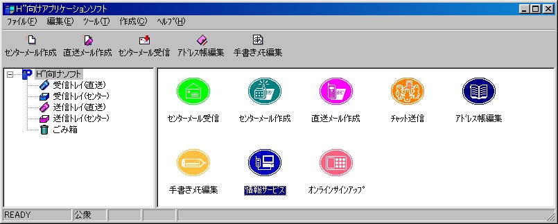 また、PメールDXについては、端末のみでは利用できないものの、Windows 98/95が動作するPCにDDIポケットが配布している「H"向けアプリケーションソフト」をインストールすれば、PメールDXをPCの画面上で利用できるようになる。厳密には対応機種に含まれていないが、同アプリケーションを収録したフロッピーディスクがパッケージ内に同梱されており、無保証ながらも事実上の対応機種という扱いになっているようだ。