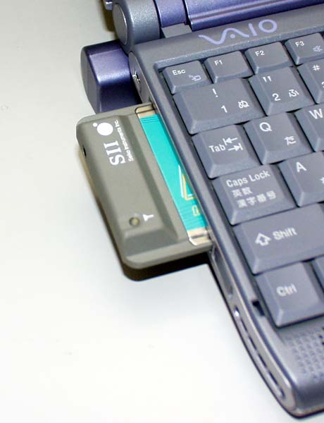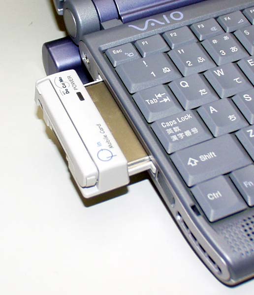 MobileCard P-inをVAIO C1-XEに装着。突出部分は約30mm |
