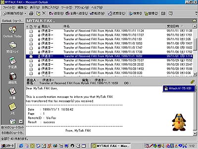 まいと~くFAX2001には、FAXを受信すると指定したメールアドレスにFAXを添付ファイルとして転送してくれる機能がある。この機能を利用すれば、電子メールが受信できる環境であればどこでもFAXを見ることができるのだ |