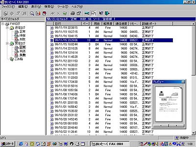 インターコムの「まいと~くFAX2001」。これは、FAXエクスプローラーと呼ばれる詳細画面で、このほかにFAX機のような感覚で操作できる「バーチャルデスクトップ」という画面も選択することもできる |