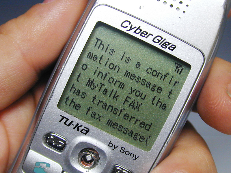 まいとーくFAXが送信してきたメッセージのヘッダー部分。この後に、日時と相手のID、枚数が表示される。携帯電話のメールサービスと併用すると、FAXが送られてくるとすぐにわかるので見逃しがなく便利だ |