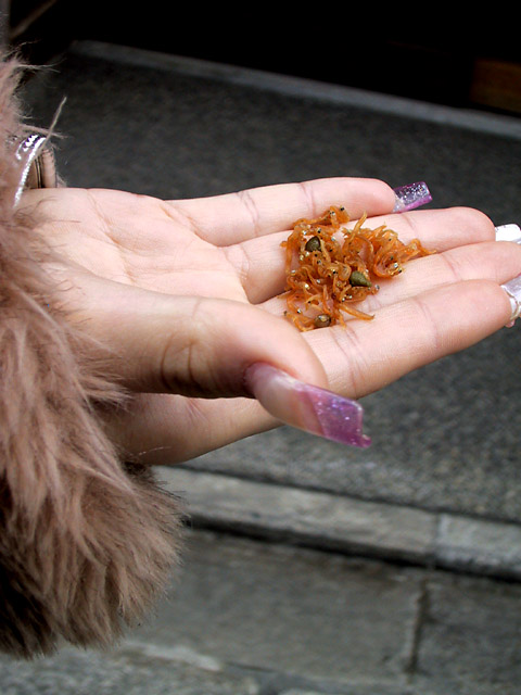 カメラのセッティングは、ISO100、Mモード、圧縮:Fine、WB:AWB|Daylight|Tungsten、コントラスト:-、シャープネス:-。撮影中触ったのは露出補正とホワイトバランスのみ。また、マクロモード以外は全て光学ファインダーを使っている。手持ちのコンパクトフラッシュは96MB×2、64MB×1。圧縮:Fineで約300枚近くノートパソコンへバックアップ無しで撮れる計算だ。340MBのマイクロドライブは一応持っていったものの、結局使うことはなかった。バッテリーが心配だったのと、ちょうど96MB2枚分=200枚程度撮った時に休憩しながらバックアップしたためだ。