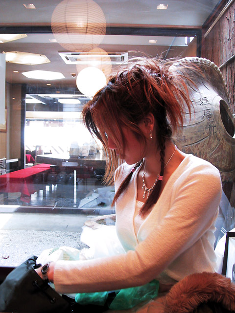 今回はこんな感じでレフ板も何も使わず、そのまま自然に写している。但し、全て没カット。(^^; 一般的なパターンと違うのは「内蔵フラッシュを全く使っていない」こと程度だろう。暗いシーンが多かったこともあり、手ブレ、被写体ブレ、ピンボケ続出。ヒット率は三割未満か!?(笑)「これじゃ、肝心の顔がわからない!!」と思う方、是非会場まで!!(モデル Ayuka@京都)