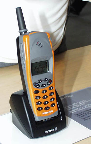 ERICSSON R250s Pro サイズ:148×59×32mm、325g。よりハードな環境での利用を考慮した携帯電話。冒険野郎向き?
