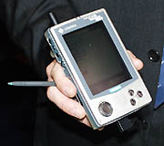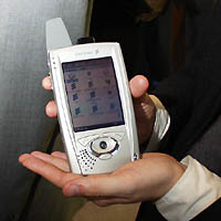 NECや富士通とは一味違った形で受け入れられていたのがソニーだ。ソニーはCeBIT2000でCMD-Z5というコンパクトなGSM携帯電話を発表し、会場の注目を集めていた。ボディサイズは日本のPHSなどに近いもので、フリップ式で内部に液晶ディスプレイとボタン類を備える。側面にはクルクルピッピッでおなじみのジョグダイヤルも装備している。CMD-Z5の特長は外見だけではない。コンテンツサービスを閲覧するためのブラウザとして、WAP/HTMLの両方に対応したMicrosoftのMobileExplorerを採用しているのも見逃せない点だ。