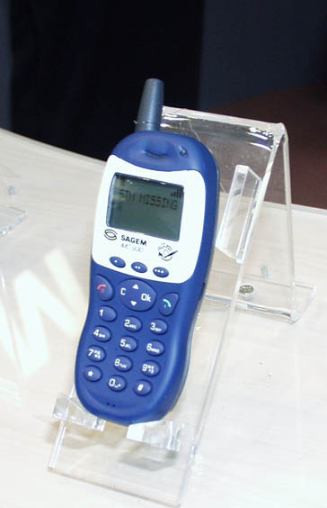 同じフランス勢のSAGEMもなかなかデザイン性に優れた製品を出品している。たとえば、カラフルなボディの「MC920」もそのひとつだが、機構的に面白いのが「MC959」というモデル。写真を見てもわかるように、フリップ式の携帯なのだが、フリップを開くと本体を自立させることができる。現状ではコネクタ部が底面にあるため、モバイル向きではないが、コネクタの位置さえ変更すれば、なかなか便利なアイデアと言えないだろうか。また、SAGEMではこの他にも、液晶パネルのカバー部分が着せ替えられる「MC950」などを出品していた。