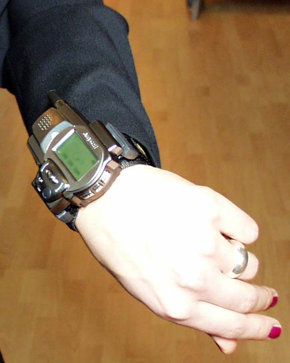 Samsung Watch Phone 噂のCDMA方式の腕時計型携帯電話。アンテナ部はやや出っ張っているが十分実用になるサイズ。日本での発売を期待したい