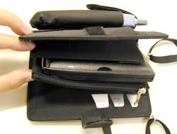 用意するものはベルクロ、いわゆるマジックテープ。これでメモっTELに自分のPDAを貼り付ける。こうすれば、携帯電話と財布とPDAを首から下げることが可能になる。しかも「開けば使える」のメモっTEL本来の使いやすさは失われず、PDAはメモっTELによって保護される。どうだ、C郎、これこそ至高のモバイルだ。