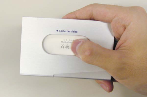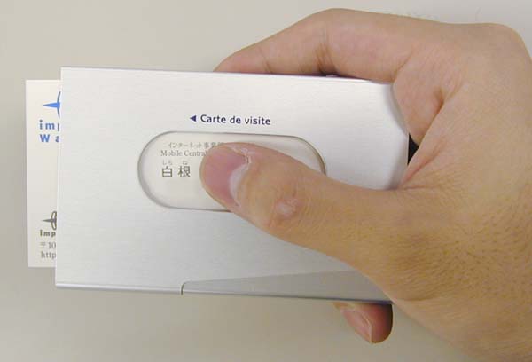 オレは相手の動きを見計らってから、ブツを取り出し、指一本のワンアクションで名刺を取り出した。