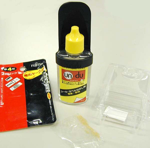 こいつは強力だった。ボトルとヘラが一体化したボディーにより、快適なラベル剥がし作業ができる。布ガムテープのしつこい接着剤もいちころ。接着剤を即効で無力化し蒸発していくこのアンドゥーがあれば、紙袋に貼られたテープのみを綺麗に剥がすことすら、可能。電池のパッケージを綺麗に剥がしたり、ダンボールに貼られたガムテープだけを剥がしたり、あまつさえ紙コップを分解することすら可能だっ! すごい。すごいぞ。すごすぎて意味がないぞ。でも、においもすごくて、なんだか楽しくなりそうだぞ。でへ。